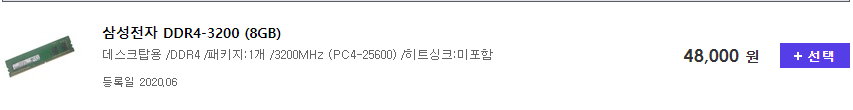 더 놀라운것은 3200 MHz인 램이 더 비싸다 ㅋㅋㅋㅋㅋㅋ 왜 그런지는 잘 모르겠다. 다나와에서 견적 짤 수 있는 곳이 두 곳이다. 그래서 다른 쪽에서 짜 봤다.