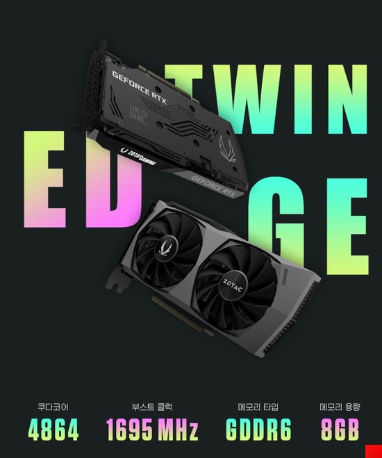 그래픽카드는 이번에 새로 나온 3060ti를 골라봤다. 그중에 ZOTAC이 가격도 낮고 성능도 좋기 때문에 ZOTAC GAMING 지포스 RTX 3060 Ti Edge OC D6 8GB TWIN을 골라 봤다. 이것만큼은 현금으로 사는 게 좋을 것 같다. 카드 540,000원, 현금 508,000이기 때문이다.