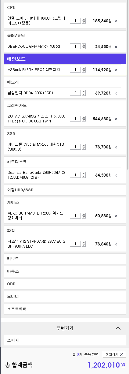 이건 최대한 낮은 가격으로 만든 견적이다. 그런데 짜다가 이상한 것을 발견했다.